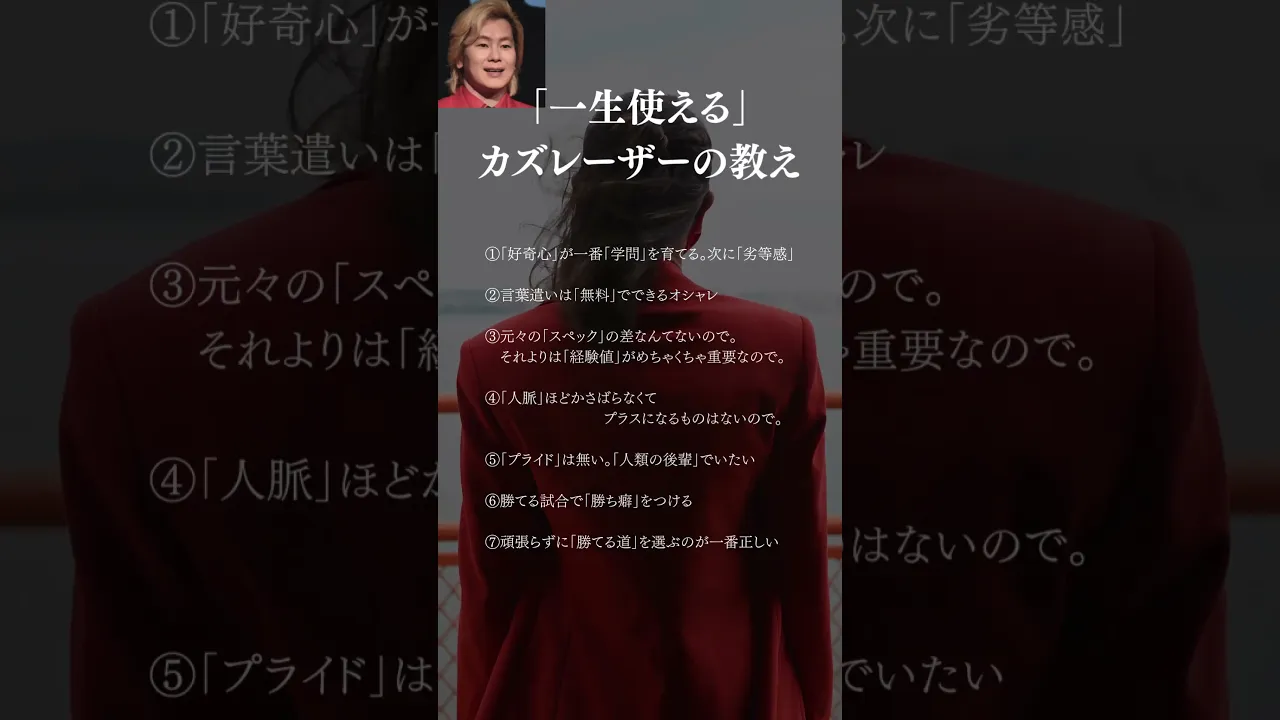 名言・格言美しさと切なさが入り混じる季節に!秋を彩る珠玉の名言たち2,194viewfavorite_borderそのプレイや生き様が世界を魅了する!サッカー選手たちの名言favorite_border珠玉の名言たちが気づきをくれる。心を震わせる感動する言葉favorite_border冷え切ってしまった心をそっと包み込んでくれる…。心温まる言葉favorite_border【カズレーザーの名言】心に刺さる言葉・人生における格言集favorite_borderポジティブな言葉を胸に刻もう!座右の銘におすすめの短い名言favorite_border独特の存在感で人気を博した大女優、樹木希林の名言favorite_border竈門炭治郎の名言で心に火が灯る。優しさと強さを教えてくれる言葉favorite_borderレコーディングで悩んだときに読みたい名言集favorite_border冨岡義勇の名言が胸に刺さる。無口な水柱が放つ深い言葉favorite_border前へ16/28次へ人気の記事【心に響く!】アニメの名言一覧。かっこいいセリフ特集favorite_border数字が入る四字熟語で語彙力アップ!小学生に覚えてほしい四字熟語集favorite_border不死川実弥の名言に迫る!隠された本当の優しさと強さfavorite_border偉人たちの胸を打つひとこと名言|心に深く刻まれる言葉集favorite_border我妻善逸の名言。弱さを受け入れながら強くなる心に響く言葉favorite_border思わずくすっと笑ってしまうおもしろい名言favorite_border思わず使いたくなる面白い四字熟語!一般常識として覚えておきたい表現集favorite_border時透無一郎の名言集。心に刻まれる霞柱の深い言葉favorite_border小学生の心を支える諦めない四字熟語!頑張る力がわく言葉favorite_border【高齢者向け】座右の銘にも!意味や字面がかっこいい四字熟語まとめfavorite_border週間アクセス【心に響く!】アニメの名言一覧。かっこいいセリフ特集favorite_border思わずくすっと笑ってしまうおもしろい名言favorite_border独創的でキャッチーなものばかり!小泉進次郎の名言favorite_border【高市早苗】心に響く名言。政治家の強く熱い言葉をご紹介favorite_border人を笑わせる言葉の魔法。心が軽くなる面白フレーズ集favorite_border心に響く!日本の偉人が残した名言favorite_border誰もが知る有名な名言。偉人やキャラクターの言葉もfavorite_border心に刺さるポジティブな名言。短い言葉が人生を変える力favorite_borderユーモアのセンスのある名言。くすっと笑える偉人の言葉favorite_border文豪の名言。魅力的な作品をつづる文豪からのメッセージfavorite_border