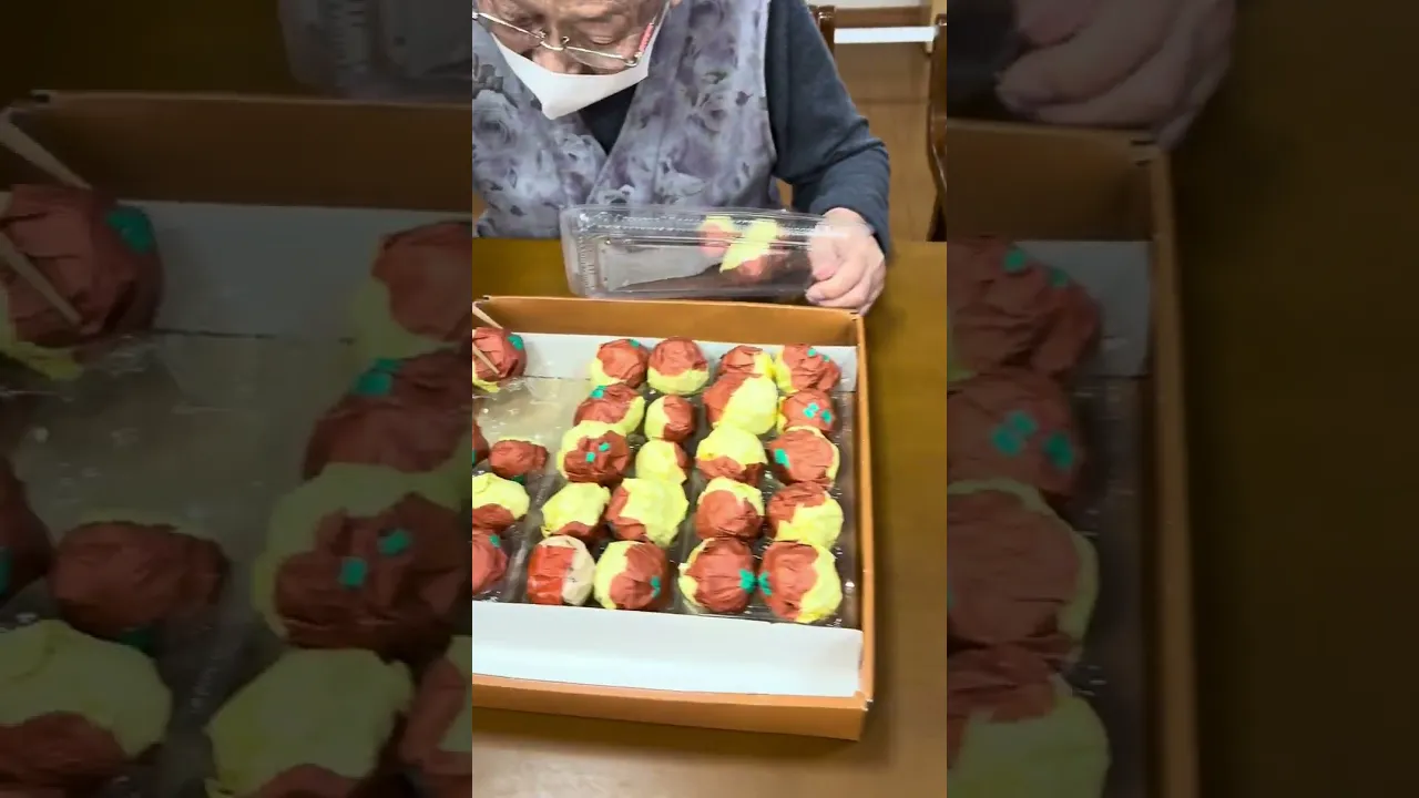 Use chopsticks to pick up the prepared takoyaki and pack them into a container.