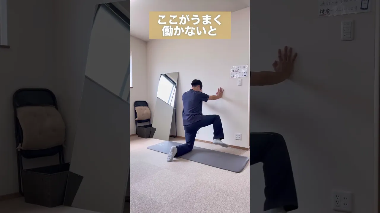 First, kneel and place both hands on the wall.