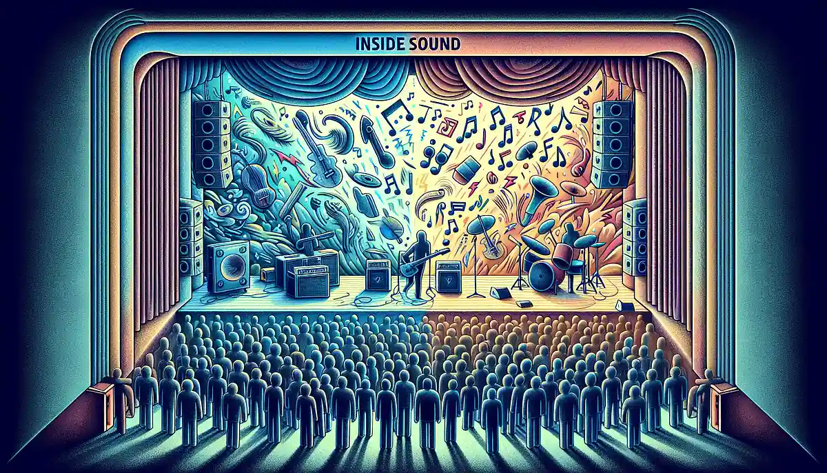 The sound outside the stage refers to the sound that the audience hears.