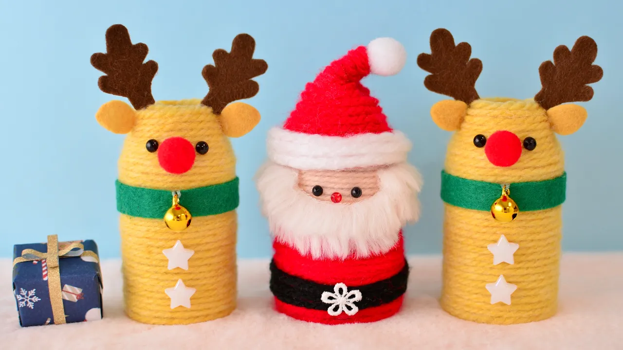 You can make it by wrapping yarn around the empty container and attaching antlers, a collar, and facial parts.