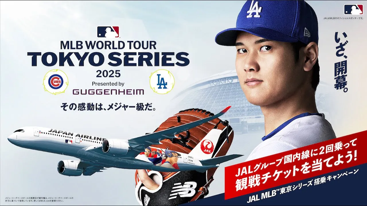 MLB東京シリーズのチケットが当たるJALのキャンペーンを紹介、開幕のワクワクも伝えていくようなCMです。