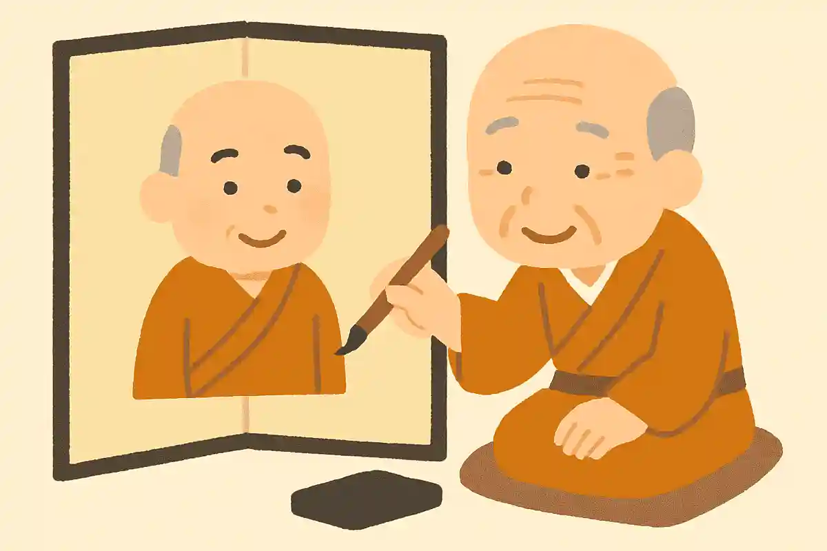 스님이 병풍에 능숙하게 스님의 그림을 그렸다