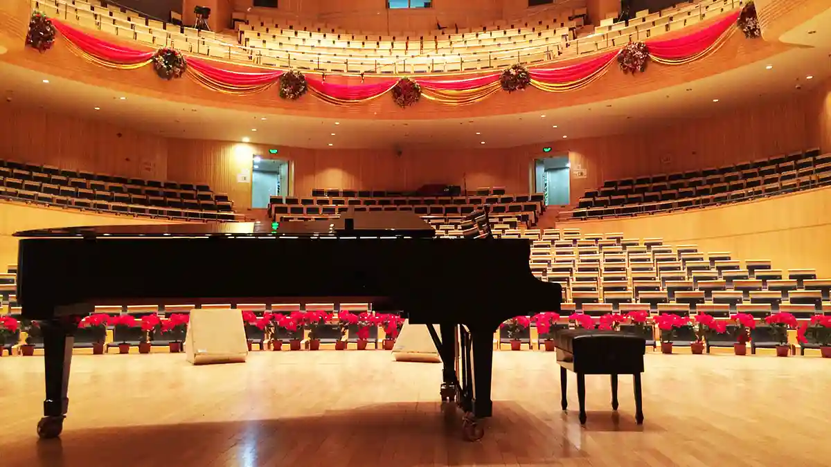 홀에서 열리는 피아노 발표회라면 무대가 보이는 중앙에서 약간 오른쪽의 객석, 관객의 귀 위치보다 조금 위쪽이 대체로 기본입니다.