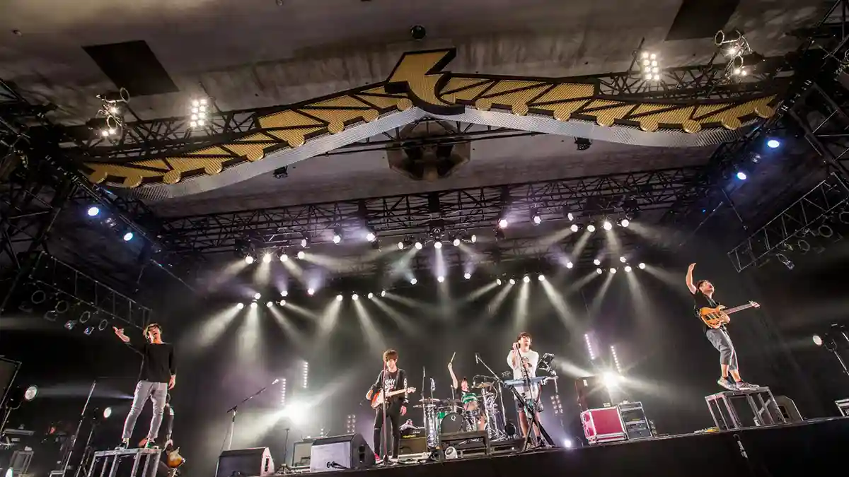 “개구린 춤 같이 추자!”라며 관객을 달아오르게 하자, 보컬·기타 야마사키 세이야와 키보드·보컬 요코타 신노스케의 춤에 맞춰 회장에 있는 모두가 함께 춤추며 들썩입니다.