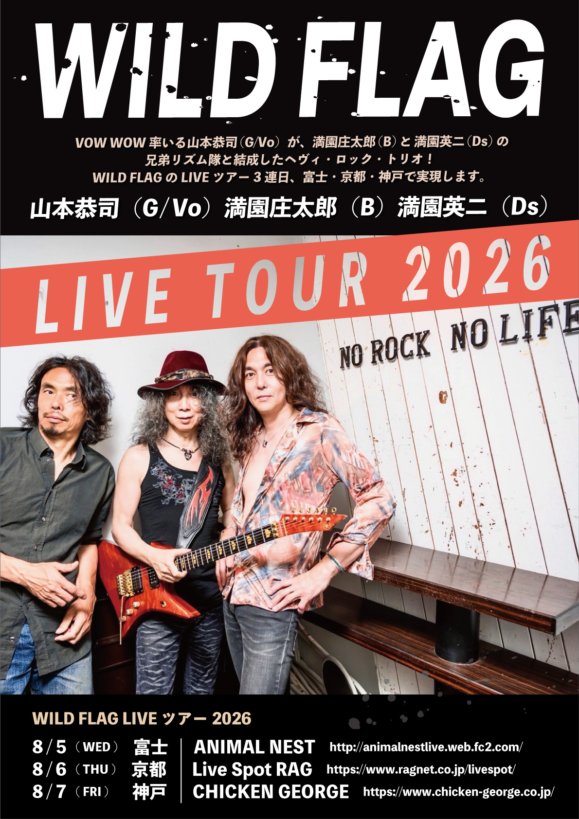 WILD FLAGの LIVEツアー3連日、富士・京都・神戸で実現します。