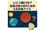 【2025年東京開催】世界陸上の雑学クイズ!意外と知らない豆知識に挑戦しようfavorite_borderいくつ解ける?阪神タイガースの雑学&豆知識クイズでファン度を試そうfavorite_border何問答えられる?高市早苗に関する雑学クイズ・豆知識問題をご紹介favorite_borderいくつ解ける?皆既月食の意外な雑学&豆知識クイズfavorite_borderそんなものまで!?おもしろレンタルサービスを一挙にご紹介favorite_border【小学生向け】頭の体操にオススメ!ついついハマるマッチ棒クイズに挑戦しようfavorite_borderさらに進化した!Nintendo Switch 2の雑学クイズ・豆知識問題を深堀りfavorite_borderあなたは何問正解できる?太陽光パネルの雑学クイズ・豆知識問題をご紹介favorite_border小泉進次郎さんに関する雑学クイズ・豆知識問題まとめfavorite_border前へ3/96次へ人気の記事【小学生向け】暗号クイズ。面白い謎解き問題favorite_border意外と知らない?豆知識クイズ【3択問題】favorite_border【小学生向け】オススメの謎解き問題まとめfavorite_borderスポーツにまつわるクイズ問題集favorite_border【豆知識】あなたはわかる?動物クイズまとめfavorite_border【暇つぶし】思わず誰かに教えたくなる雑学クイズ特集favorite_border【ひっかけクイズ】子供から大人まで盛り上がるクイズ問題favorite_border大人向けの難しいクイズまとめ【難問】favorite_border解けたら天才?超難問クイズ問題集favorite_border【高齢者向け】楽しくてためになるマルバツクイズfavorite_border週間アクセス【暇つぶし】思わず誰かに教えたくなる雑学クイズ特集favorite_border【一般向け】日常で即使える!役立つ驚きの雑学&豆知識favorite_border【究極の二択】会話のタネやお互いを知るキッカケに!favorite_border意外と知らない?豆知識クイズ【3択問題】favorite_border知りたくなかった?!気になる怖い雑学&豆知識favorite_border【挑戦】意外と知らない一般常識クイズで知的好奇心を刺激!favorite_border【解ければ天才?】ひらめきと直感 難問IQクイズfavorite_border【高齢者向け】おもしろくて盛り上がる!オススメのクイズ問題favorite_border【高齢者向け】笑えて盛り上がる!面白クイズfavorite_border【面白い】雑学クイズの問題まとめfavorite_border