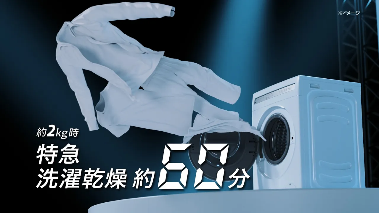 ニトリのドラム式洗濯機の魅力を紹介するCMです。
