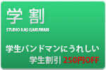 メンバー全員が大学生だけでなく高校生や専門学生など現役学生の方であればどなたでも1時間あたり250円のディスカウント。全スタジオでご利用になれます。